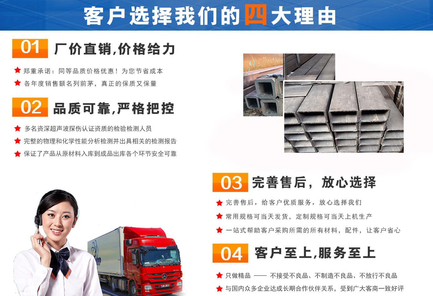無錫盛灝特鋼有限公司長期銷售Q355B方矩管,鍍鋅方矩管,大口徑方矩管,厚壁方矩管,無縫方矩管等各種方管產品!產品廣泛應用于鋼結構建筑(鋼管混凝土、管樁、管桁架,橋梁、海上作業(yè)平臺、港口碼頭建設、電視通訊鐵塔、電力鐵塔等鋼結構管)。壓力管道(石油、天然氣、煤漿等輸送)、機械制輥等領域。 公司自創(chuàng)辦以來,一直堅持“誠信合作,共同發(fā)展”的經營理念。 一直以來我們本著“以誠相待,以信為本,互利互惠,共同發(fā)展”的長期方針,充分發(fā)揮現貨資源優(yōu)勢為您提供“可靠的產品、過硬的質量、完善的服務”,歡迎廣大新老客戶前來洽談業(yè)務。 公司以“至誠至信,雙利雙贏”為根本宗旨,堅持科技興企的發(fā)展策略,恪守商規(guī),創(chuàng)新進去,贏得聲譽,贏得了市場,得到了社會各階層的認可。公司以雄厚的實力、可靠的質量、儲存鋼管門類齊全、庫存量大之優(yōu)勢,本著守法、守信、創(chuàng)新的理念,打造精品,發(fā)展鋼管多元化品種,滿足客戶各種需求,以低廉的價格、熱情的服務面向國內外客戶,歡迎鋼管界同仁加盟!我們?yōu)榭蛻籼峁┲艿降姆?! 公司為客戶提供以下服務 服務三保: 保證質量、保證時間、保證數量。 服務宗旨: 雄厚的實力、優(yōu)質的產品、低廉的價格、周到的服務。 批零兼營,一支起定。...